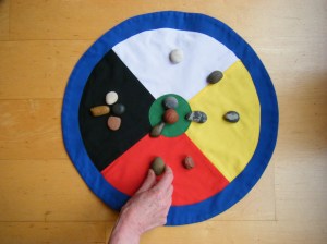 The Wheel of the four directions forms one of the basic ground plans in which a systemic ritual takes place. The Wheel of the four directions works with the qualities of the four cardinal directions, which means no more than the conscious application of the universal cycle of ‘coming’ / ‘being’ / ‘going’ / ‘rest’ and all associated qualities. The Wheel brings order, depth, insight and balance on the mental, emotional and soul levels.